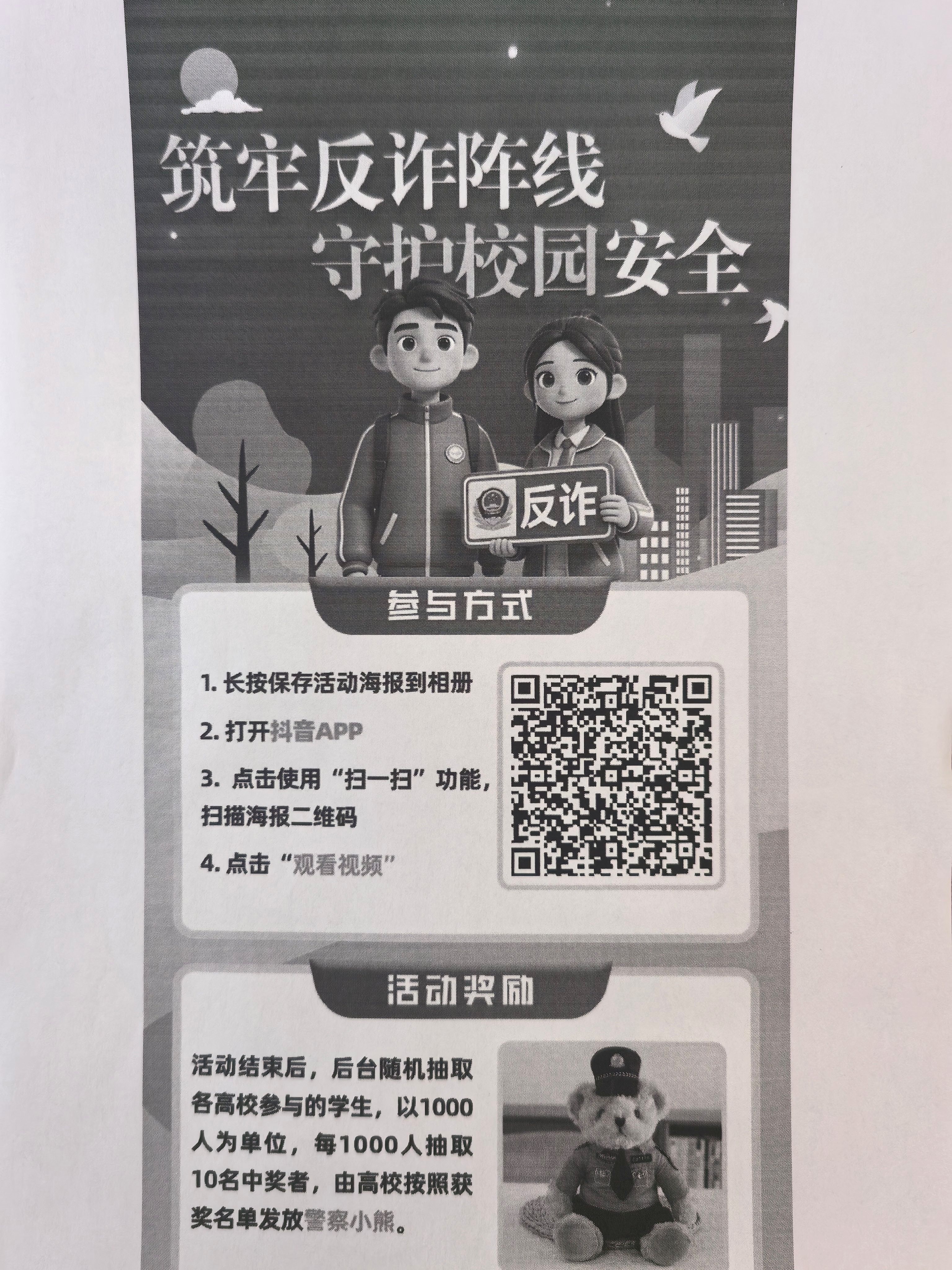 通过抖音APP扫描活动海报中二维码,按照操作流程进入课堂直播间参与反诈知识学习。